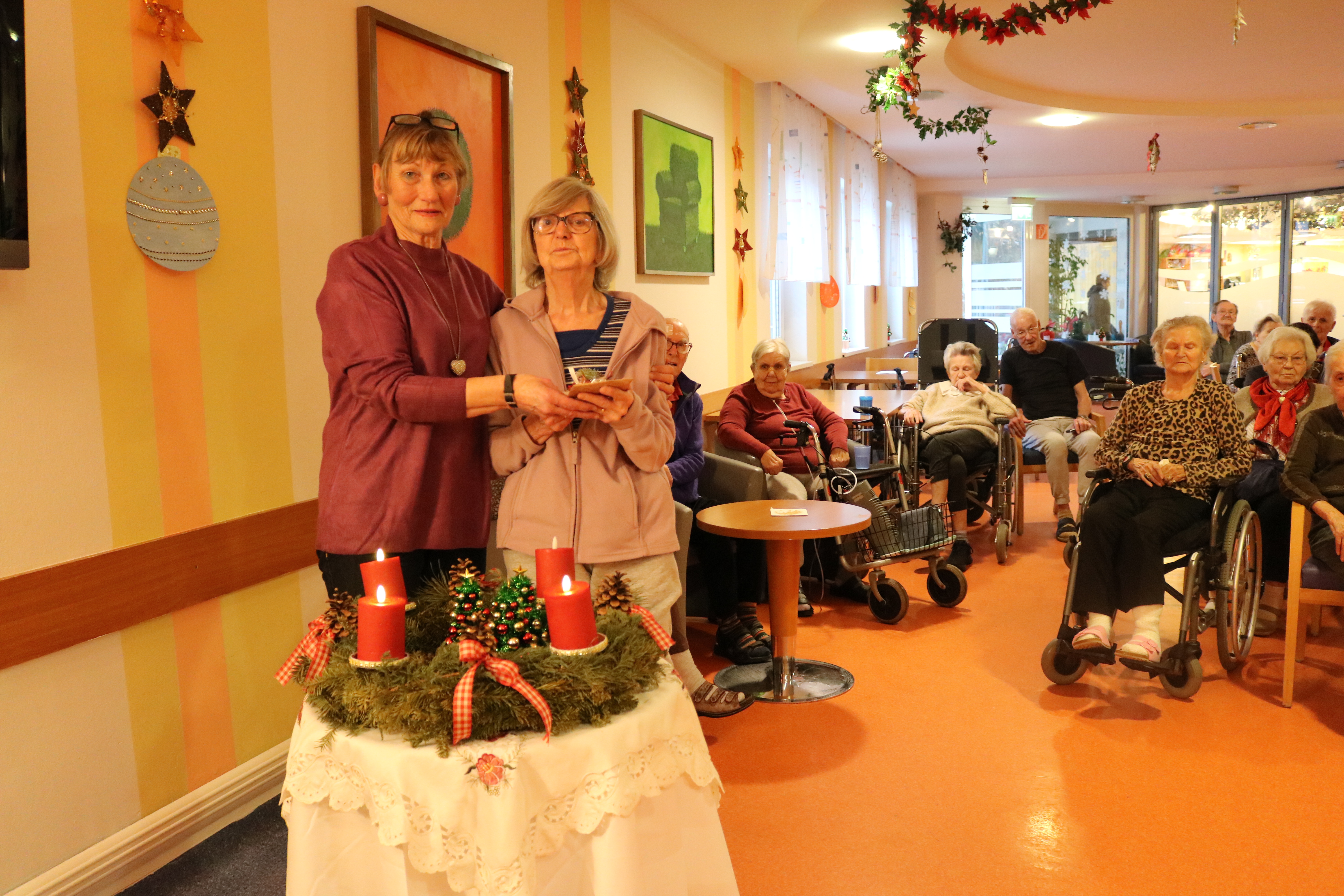 Die traditionelle Adventecke verzauberte auch heuer wieder die Bewohner:innen des SeneCura Sozialzentrums Trofaiach bei den beiden Adventfeiern mit Renate Schuberth Renate und beim Adventsingen der Fam. Höpfner. Gemeinsam sangen wir die traditionellen Weihnachtslieder, die Geschichten beinhalteten von besinnlich bis humorvoll alles was das Herz begehrt. Man konnte den weihnachtlichen Zauber im ganzen Haus spüren. „Über das jährliche gemeinsame Singen freue ich mich jedes Mal aufs Neue“, so eine Bewohnerin, zu Fam. Höpfner. Ernestine Brandner bedankte sich mit einem kleinen Präsent im Namen aller Bewohner:innen bei Renate Schubert für ihre Darbietung auch Fam. Höpfner wurde ein Weihnachtsgeschenk überreicht.