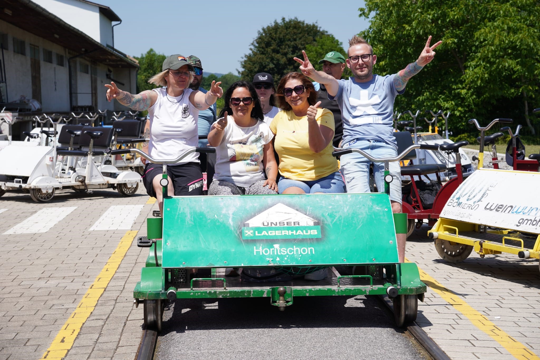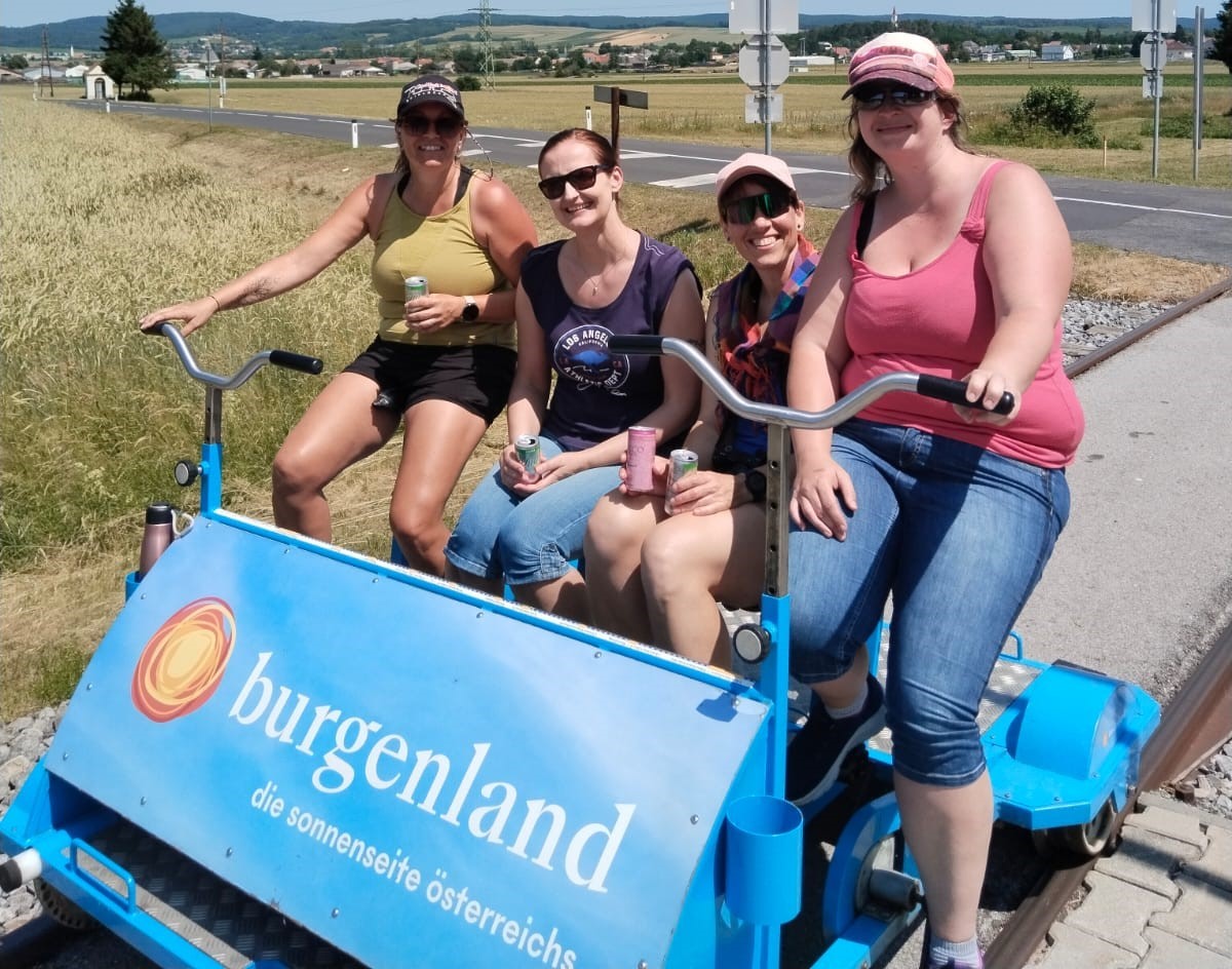 So ging es für die Mitarbeiterinnen ins Burgenland zu einer Drasinentour. Die Drasinen werden wie ein Fahrrad angetrieben und laufen auf Gleise.