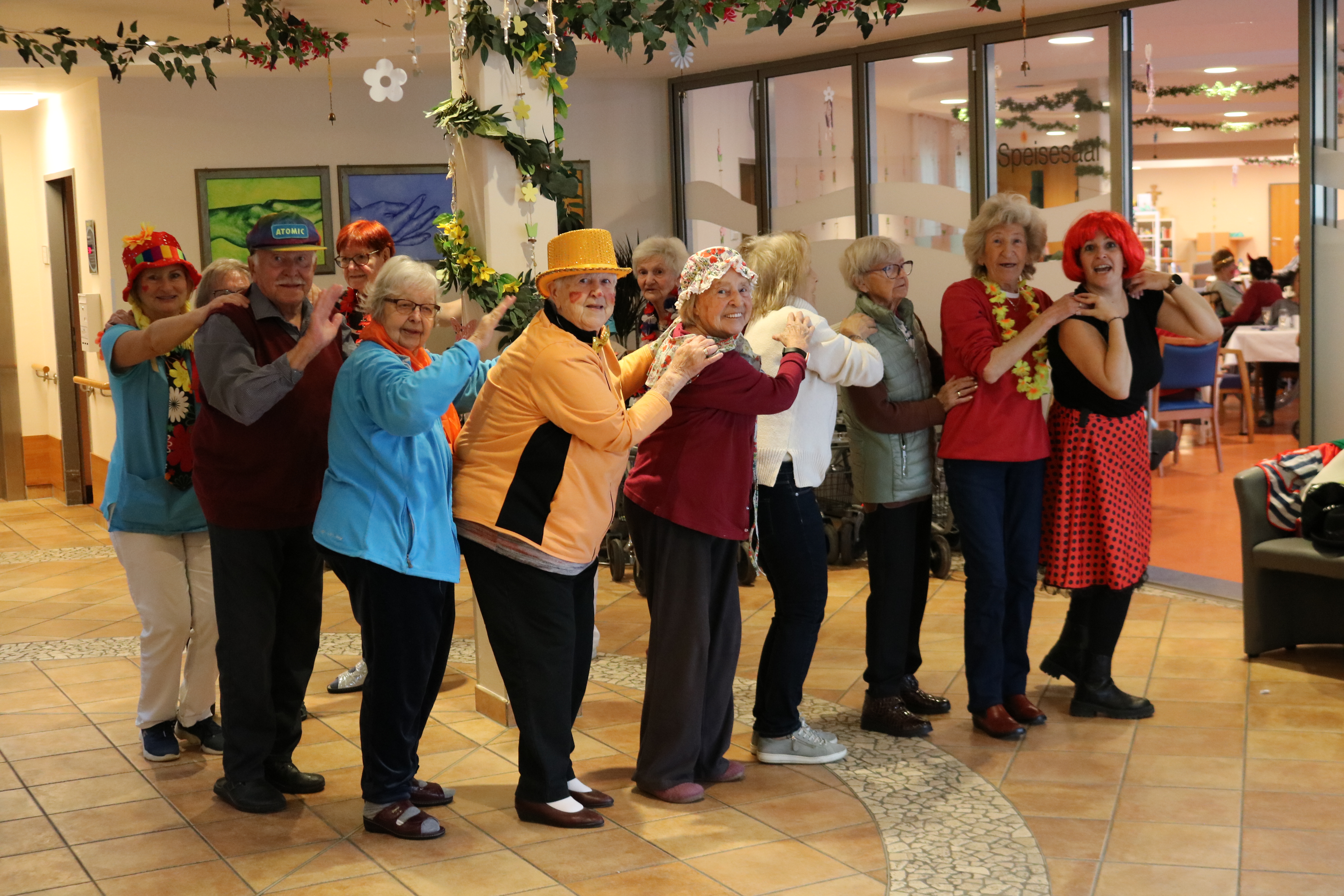 Im SeneCura Sozialzentrum Trofaiach wurde der Faschingsdienstag wie jedes Jahr in ausgelassener Stimmung begangen. Bereits am Vormittag machten sich unsere Bewohner:innen gemeinsam mit der Hausanimation und den ehrenamtlichen Mitarbeiter:innen auf den Weg zur Gladensiedlung, um beim Faschingsumzug und dem bunten Treiben vor Ort dabei zu sein. Die Narren sorgten mit ihren farbenfrohen Kostümen, viel Humor sowie der Verteilung von Süßigkeiten und kleinen Überraschungen für zahlreiche strahlende Gesichter. Am Nachmittag setzte sich die Faschingsfeier im Haus fort. Der Eintritt zur Veranstaltung erfolgte über ein kleines Faschingsutensil, das jede:r Bewohner:in aus unserer Kostümkiste als Eintrittskarte auswählen konnte. Für musikalische Unterhaltung sorgte Rene Oswald mit Live-Musik, zu der geschunkelt, getanzt und gesungen wurde. Ein Höhepunkt der Feier war die mitreißende Bolognese, bei der alle Bewohner:innen aktiv mitwirkten und den Speisesaal durch das Foyer bis zurück begleiteten. Bei einem Glas Sekt und köstlichen Faschingskrapfen fand der fröhliche Nachmittag seinen gemütlichen Ausklang.