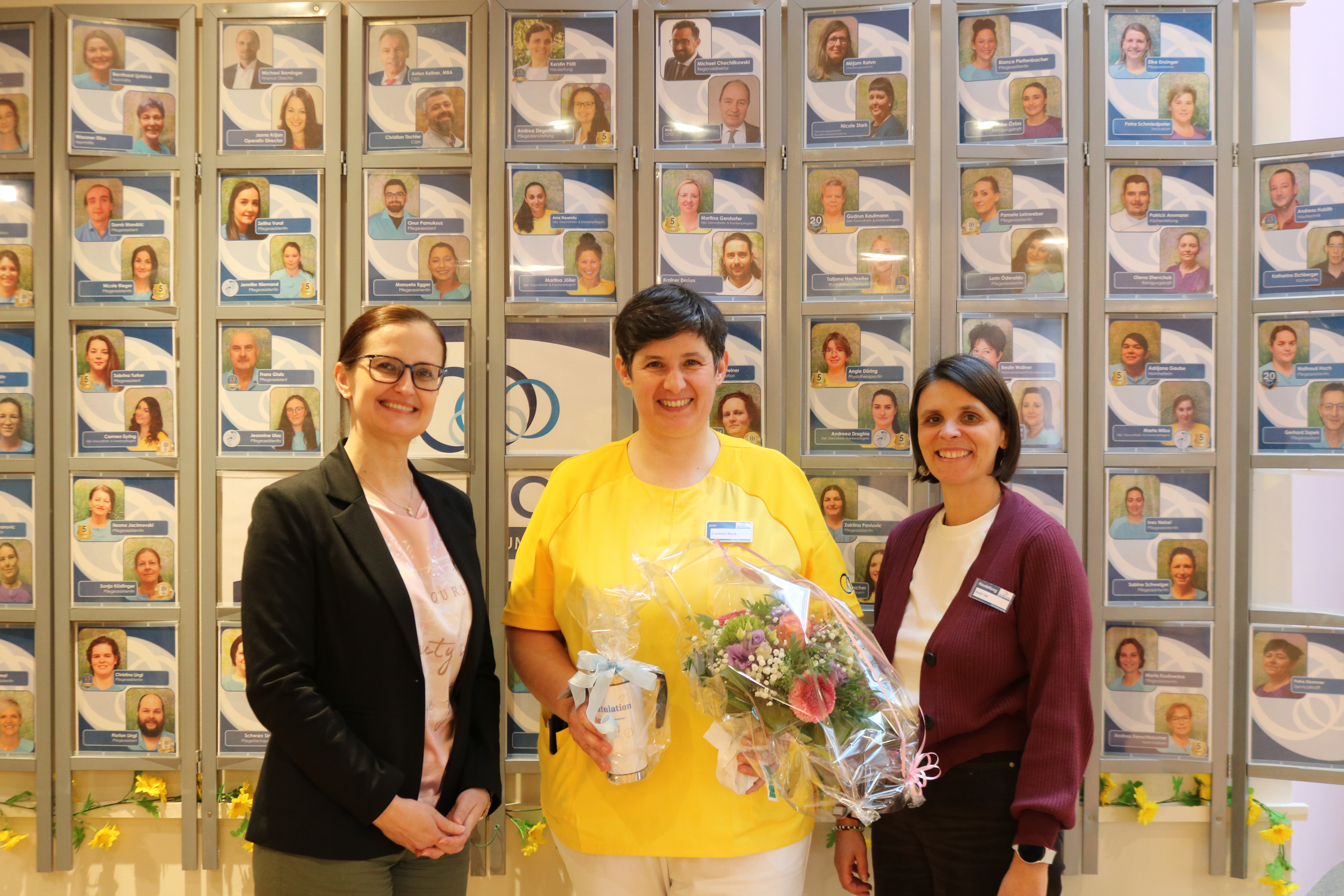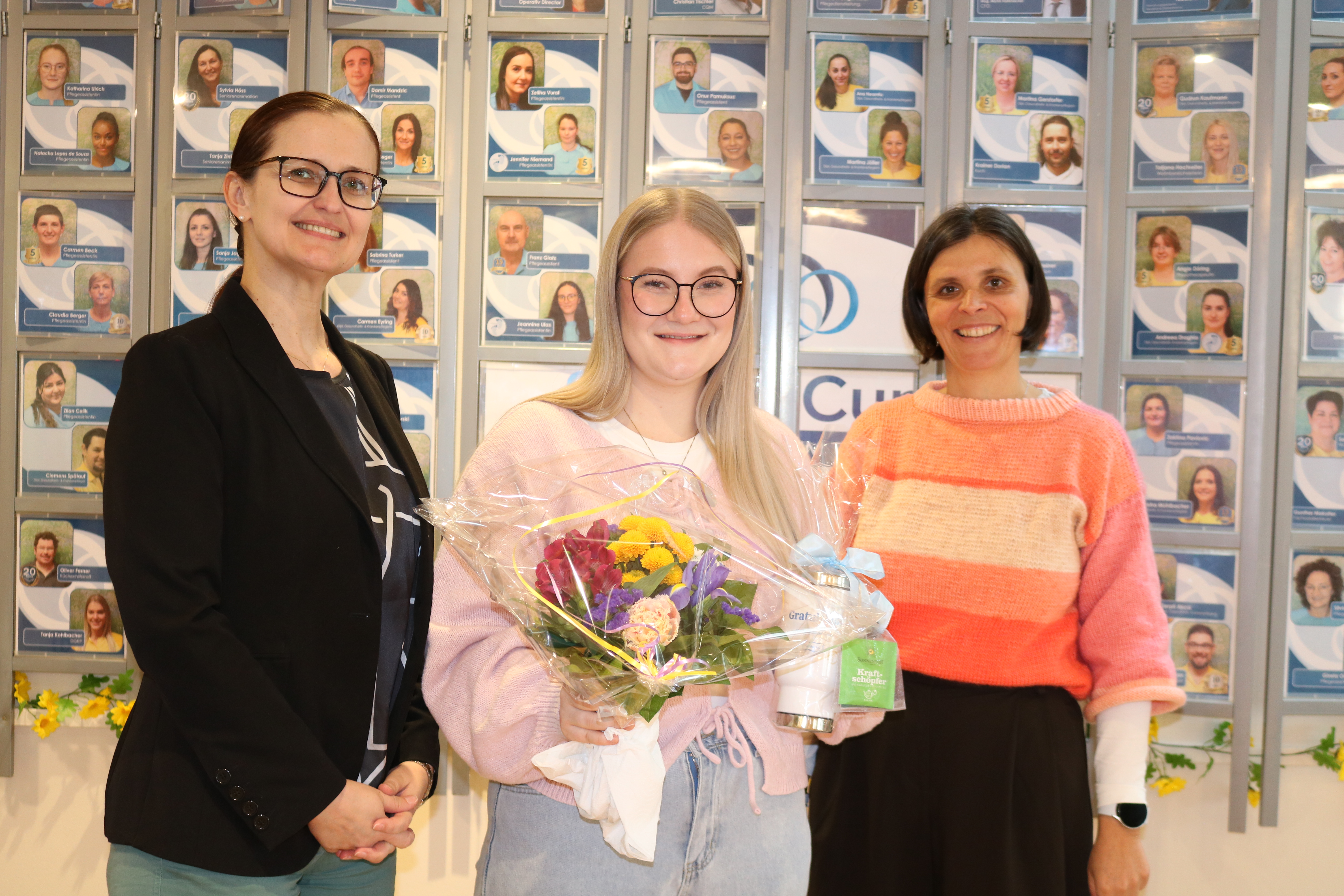 Im SeneCura Sozialzentrum Trofaiach dürfen wir zwei langjährigen Mitarbeiterinnen zu einem besonderen Erfolg gratulieren: Frau Carmen Beck und Frau Katharina Ulrich haben ihre Ausbildung zur Diplomierten Gesundheits- und Krankenpflegerin erfolgreich abgeschlossen – und das zusätzlich zum beruflichen Alltag im Haus. Pflegedienstleitung Andrea Ziegerhofer und Hausleitung Kerstin Pöltl zeigten sich sehr stolz auf die beiden Absolventinnen. Als kleine Anerkennung wurden Blumensträuße sowie ein SeneCura Trofaiach Thermobecher überreicht. Das gesamte Team gratuliert herzlich zu dieser großartigen Leistung und freut sich über die weitere gemeinsame Zusammenarbeit im Haus.